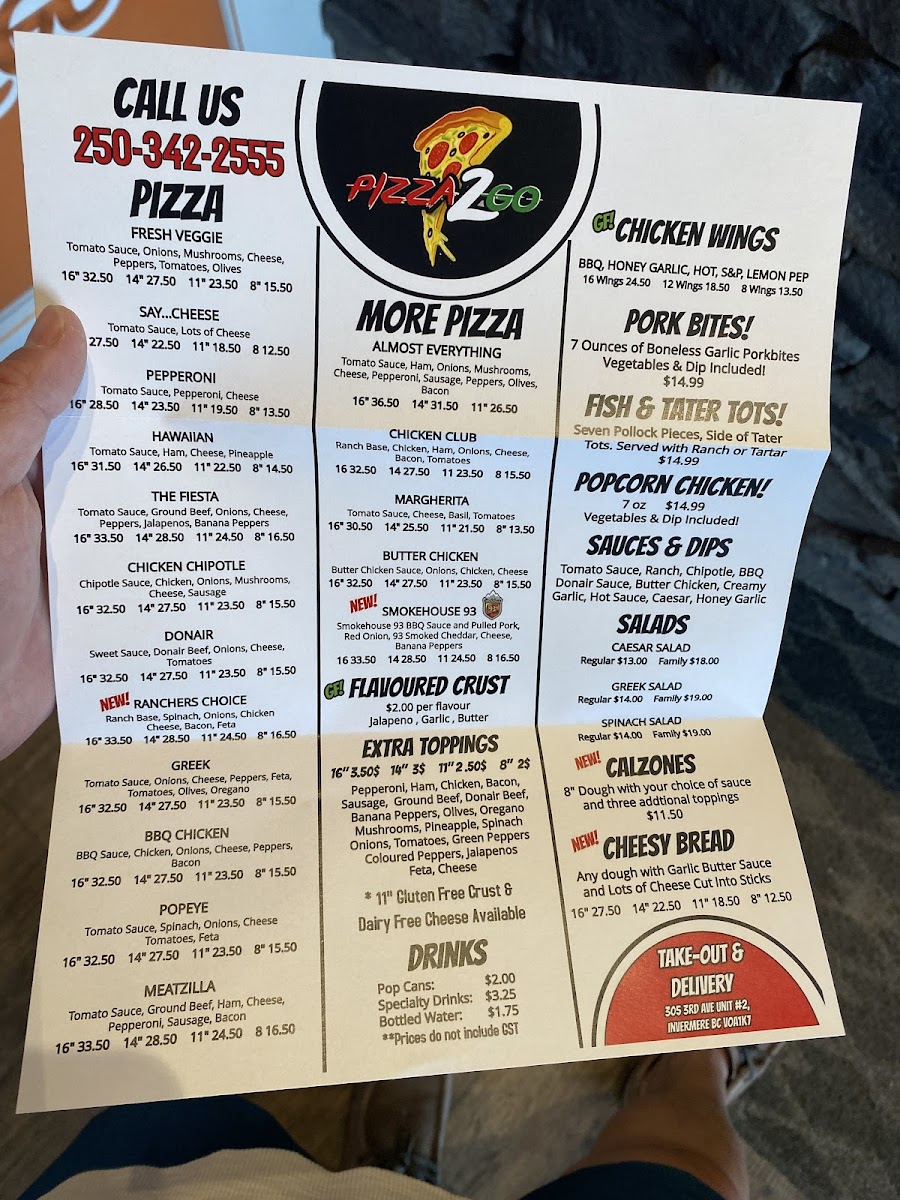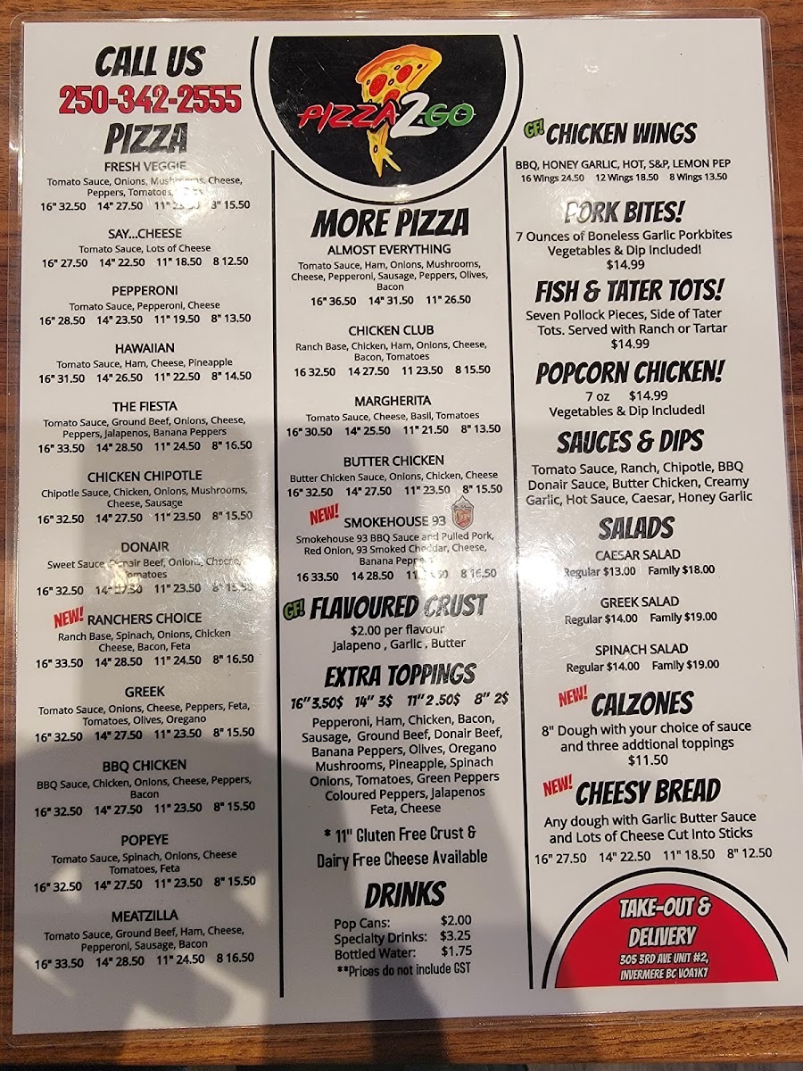 The menu at Pizza 2 Go offers a wide variety of flavorful dishes that cater to various tastes and preferences. Their pizza selection includes classics like Fresh Veggie and Say...Cheese, both of which are popular for their fresh ingredients, alongside the hearty Pepperoni and Hawaiian options. For those who crave something different, there’s the Butter Chicken pizza, a fusion of bold spices, and the Fiesta, which promises a lively mix of toppings. The restaurant also serves a selection of crisp salads, including the classic Caesar Salad, the refreshing Greek Salad, and the wholesome Spinach Salad. To satisfy sweet cravings, Pizza 2 Go offers indulgent sundaes like the Oreo Cookie Galore, Reese's Peanut Butter Bliss, and the decadent Chocolate Brownie Delight. For a lighter treat, the Little Piggy Treat and S'mores & More sundae add a fun twist. Wash it all down with a range of drinks, including Pop Cans, Specialty Drinks, and Bottled Water. Whether you're after a satisfying pizza, a fresh salad, or a tempting dessert, Pizza 2 Go has something to please everyone.